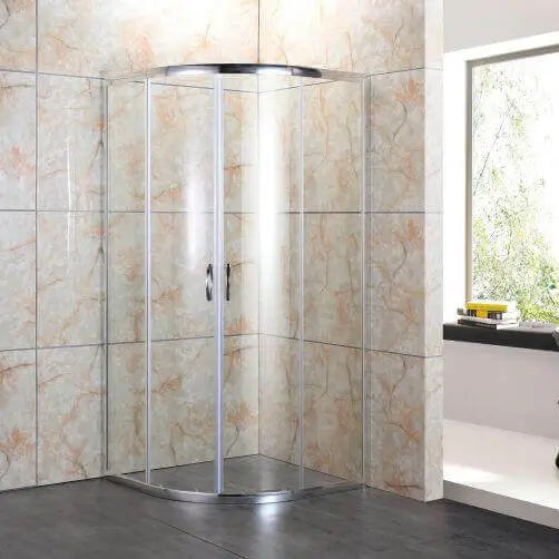 Box doccia semicircolare alto 190cm apertura a doppia anta scorrevole, in cristallo trasparente 4mm.