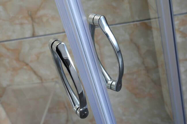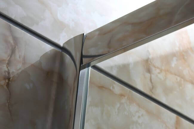 L’apertura a doppia anta scorrevole consente l'ingresso al vano doccia senza intralciare spazio nella zona bagno.
