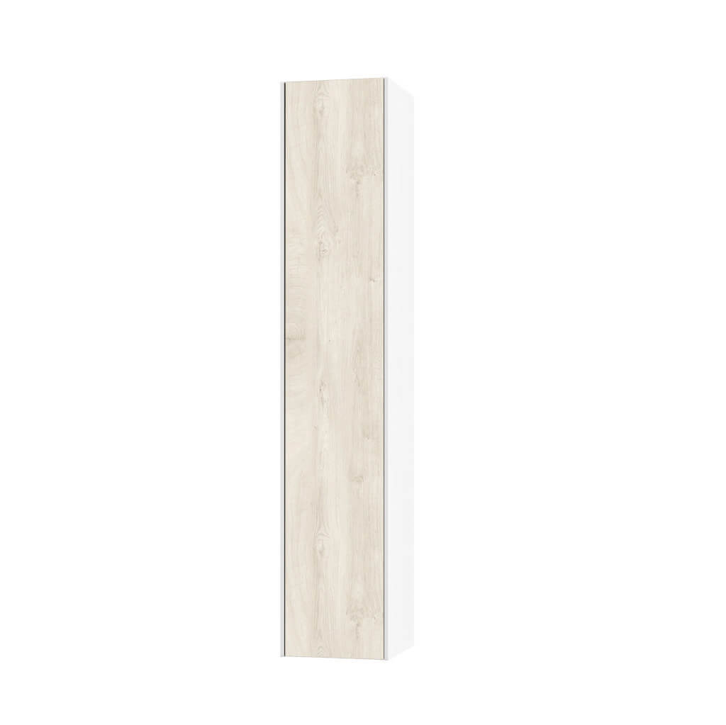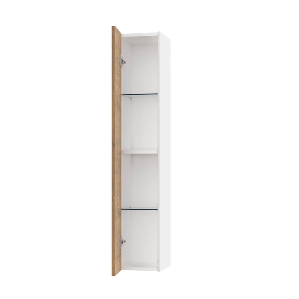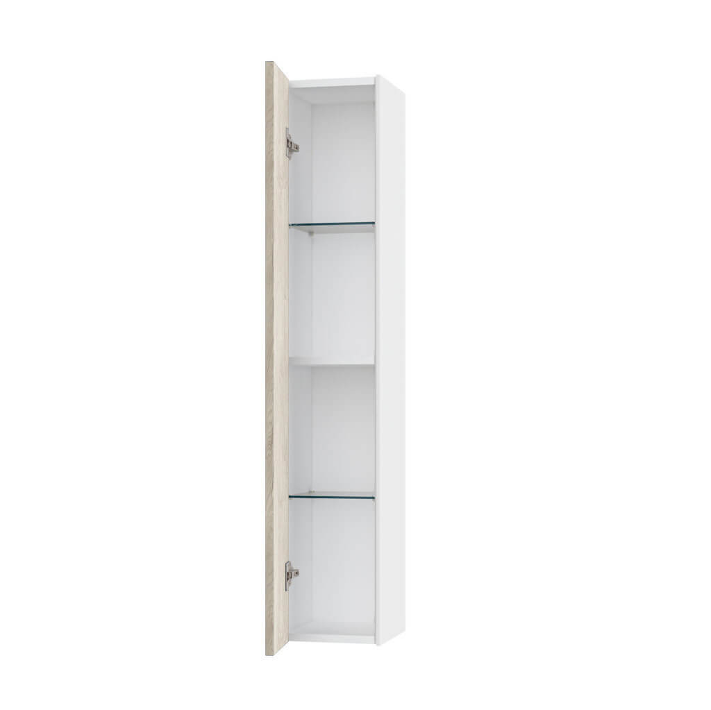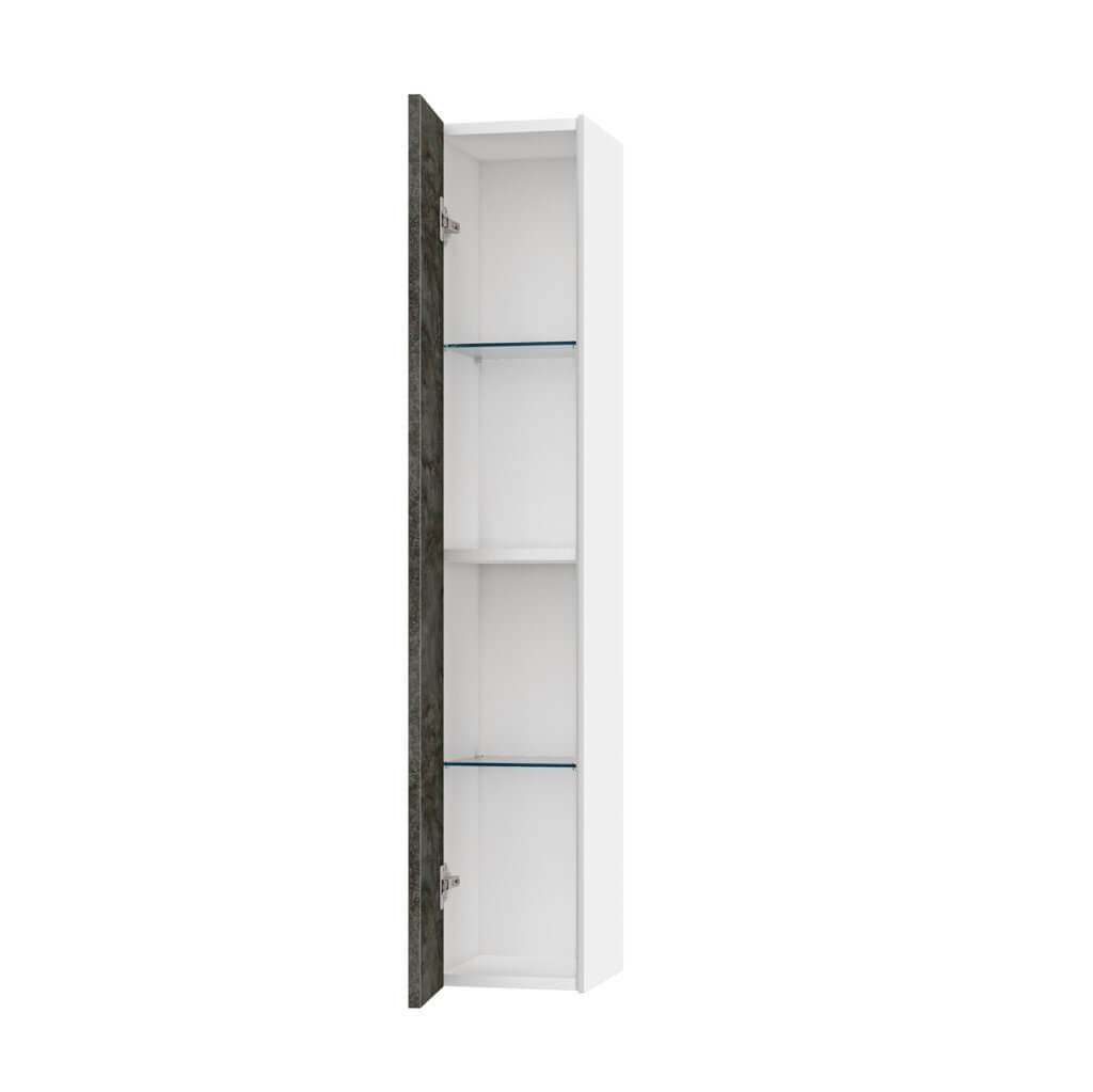 Elegante pensile colonna per bagno Made in Italy con installazione sospesa, pratico, reversibile ed elegante, disponibile in 12 finiture, realizzato in melaminico antigraffio con fianchi laterali laccati ed apertura push. Internamente la colonna dispone di due pratiche mensole realizzate in elegante vetro temperato + un ripiano realizzato in melaminico antigraffio. Pannelli certificati FSC. Made in Italy.