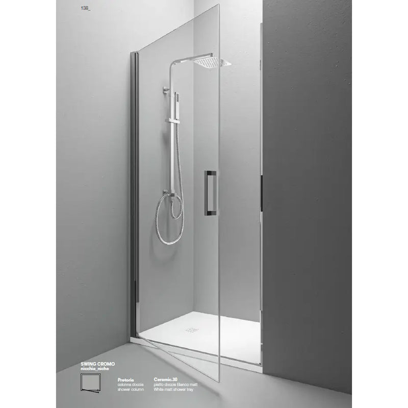 La porta doccia reversibile COLACRIL SWING aumenta il confort di utilizzo della doccia, grazie alla sua apertura a battente totale ed all'elevato spazio di ingresso che garantisce questa soluzione.