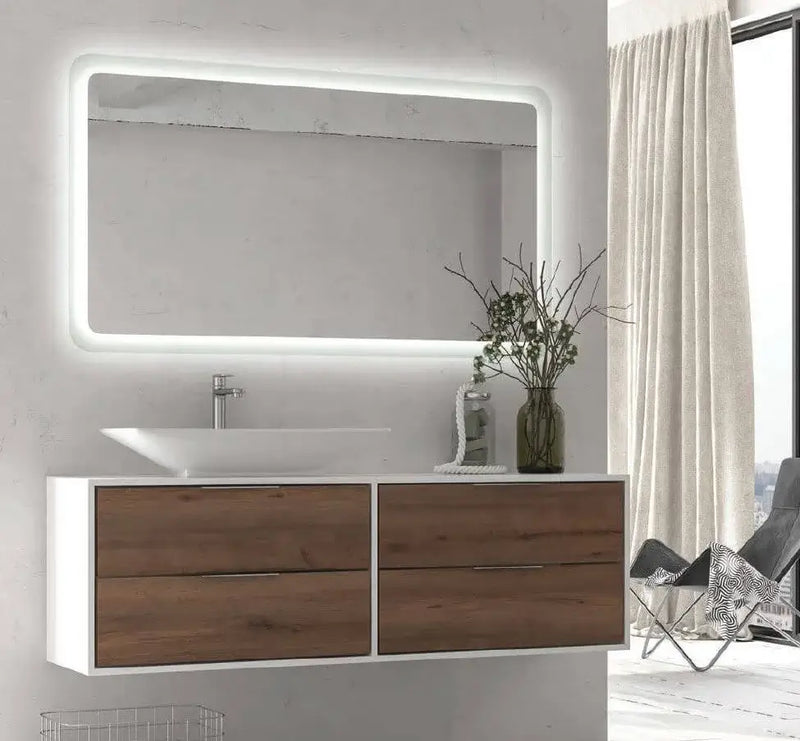 Grande ed elegante specchio per il bagno, realizzato in due misure, di forma rettangolare, dotato di illuminazione LED ad alta efficienza lungo tutta la cornice.